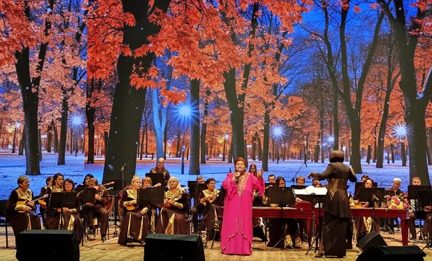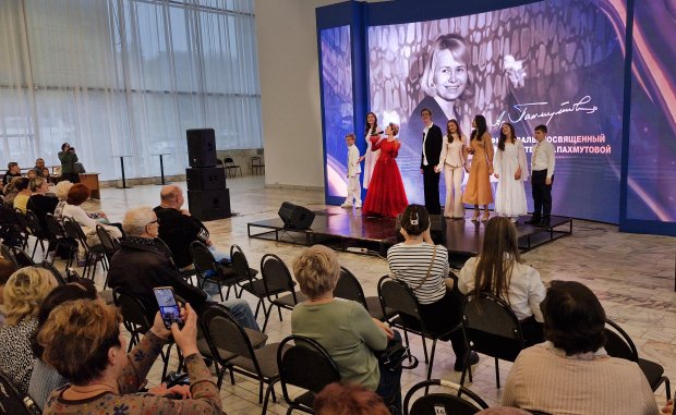 Начался гала-концерт увертюрой А. Пахмутовой «Приглашение к празднику» в исполнении оркестра русских народных инструментов имени Н. Н. Калинина. А затем со сцены концертного зала зазвучали песни и музыкальные произведения нашей знаменитой землячки.