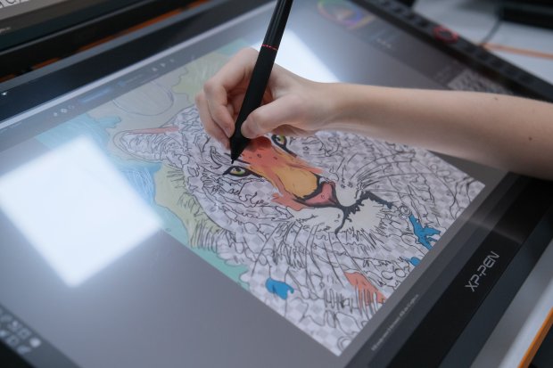«В нашей студии дети получат реальные навыки создания "в цифре" полиграфических продуктов – иллюстраций, открыток, афиш, буклетов, – прокомментировала Лариса Савенко, одна из педагогов студии дизайна. – Расскажем детям и про теорию дизайна, но все же акцент будет сделан на практике. Оборудование очень хорошее, мне кажется, дети будет от него не оторвать».